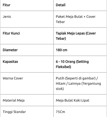 Estetika Adaptif: Permukaan meja yang rata memudahkan pemasangan berbagai jenis kain dekorasi, mulai dari skirting hingga stretch cloth.