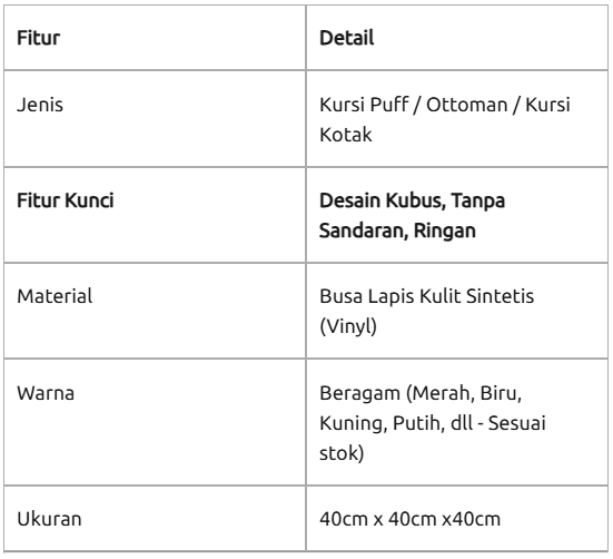High-Density Foam: Kami menggunakan busa dengan densitas tinggi. Karakteristik busa ini memiliki daya balik (rebound) yang cepat, sehingga bentuk puff tetap kotak/bulat sempurna meski telah diduduki berjam-jam.