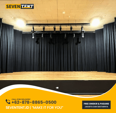 Cek panduan lengkap ukuran tirai event di Seventent.id. Detail tinggi 2,5m-5m, lebar modular, dan tips menghitung faktor kerutan (fullness) untuk backdrop panggung dan sekat ruangan. Temukan material tirai blackout dan velvet berkualitas untuk kesuksesan event Anda. Baca selengkapnya di sini!