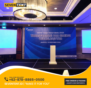 Temukan panduan lengkap Backdrop Panggung di Seventent.id. Cek ukuran standar untuk seminar, wedding, hingga konser. Detail material flexy doff anti-pantul, rangka truss kokoh, dan tips desain visual yang profesional. Solusi sewa backdrop panggung berkualitas dengan harga terbaik di sini!