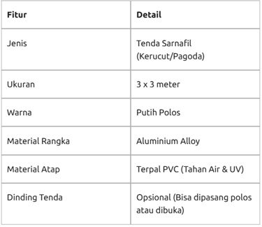 Dalam hiruk-pikuk event di Jakarta—mulai dari festival kuliner di Senayan hingga booth registrasi pameran otomotif—Tenda Sarnafil 3 x 3 adalah pilihan yang tak tergantikan. Sering disebut sebagai tenda kerucut, ukurannya yang efisien menjadikannya favorit karena mampu menghadirkan kesan mewah di lahan yang terbatas.
