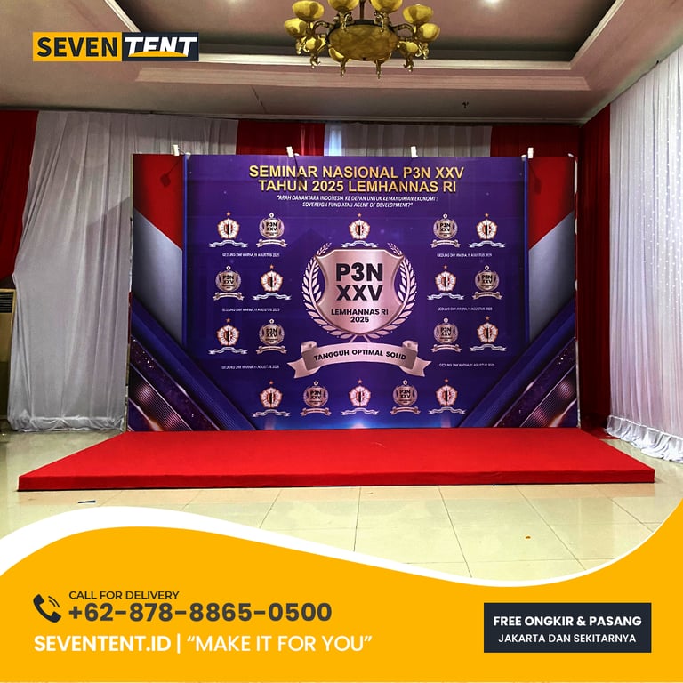 Cek panduan ukuran backdrop standar di Seventent.id. Detail dimensi untuk photobooth 5x3, hingga panggung utama 12m. Temukan tips resolusi desain, material flexy doff anti-pantul, dan konstruksi rangka kokoh untuk event Anda. Pastikan backdrop Anda presisi dan estetik di sini!