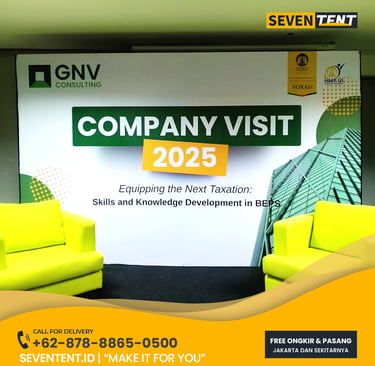 Butuh sewa backdrop Tangerang Selatan yang rapi & tajam? Seventent.id menyediakan rental backdrop panggung, seminar, & photobooth untuk BSD, Bintaro & Serpong. Cetak High-Res, rangka kokoh, & siap antar tepat waktu. Cek promo harga 2026 & buat visual acara Anda makin memukau di sini!