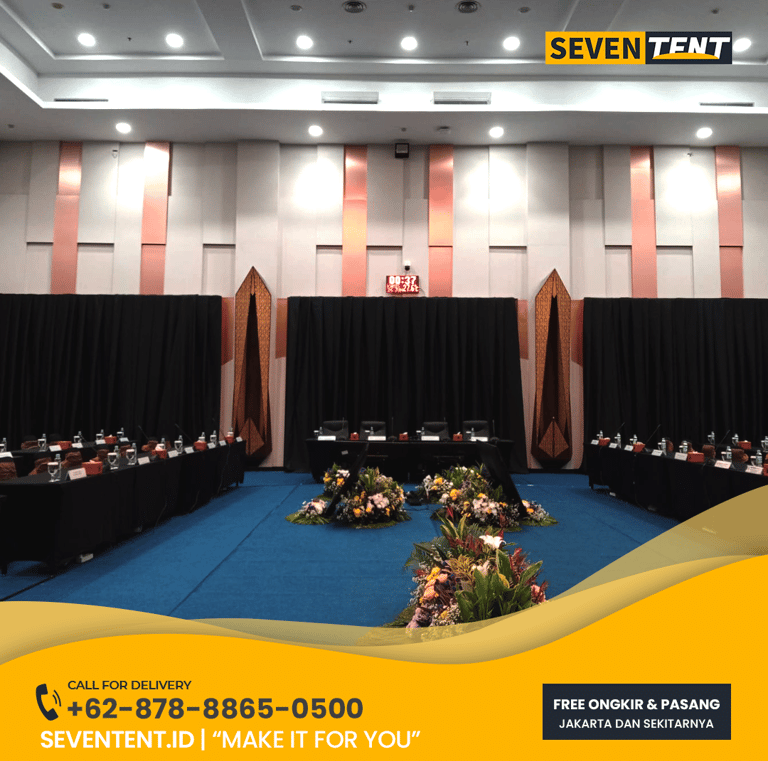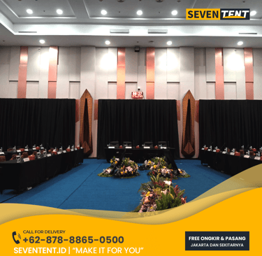 Butuh sewa kain background Tangerang Selatan yang rapi & mewah? Seventent.id menyediakan rental backdrop kain premium untuk event & studio di BSD, Bintaro & Serpong. Kain bersih, tebal, anti-pantul, & siap antar tepat waktu. Cek promo harga 2026 & buat visual panggung Anda makin eksklusif di sini!