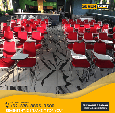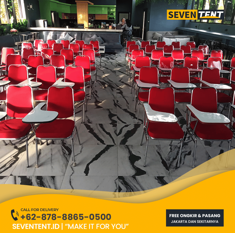 Butuh sewa kursi kuliah di Depok? Seventent.id menyediakan kursi lipat meja tulis (kursi chitose) berkualitas untuk ujian, seminar, & workshop. Unit bersih, kokoh, & siap antar hingga Depok, Kota Depok. Cek harga terbaru 2026 & booking sekarang!