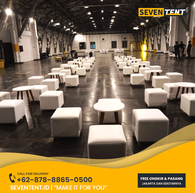 Butuh sewa kursi puff Jabodetabek yang minimalis & mewah? Seventent.id menyediakan rental sofa puff kotak & bulat kualitas premium. Unit bersih, busa empuk, & siap antar ke Jakarta hingga Cikarang. Cek promo harga 2026 & ciptakan area lounge yang estetik untuk acara Anda di sini!