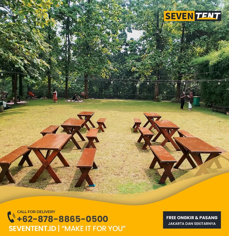 Cari sewa kursi taman Karawang? Cek panduan spesifikasi kayu solid 2026. Analisis karakteristik rustic, durability beban 120kg, & FAQ lengkap untuk garden party di KIIC, Suryacipta, & Galuh Mas. Unit estetik, bersih, & siap antar dari Seventent.id. Baca selengkapnya di sini!
