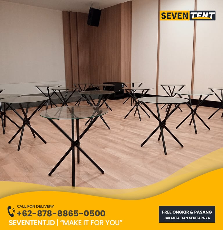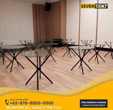 Cari sewa meja dealing Karawang? Cek panduan ukuran meja bulat kaca 2026. Analisis karakteristik modern minimalis, durability tempered glass, & FAQ lengkap untuk booth pameran di KIIC, Suryacipta, & Galuh Mas. Unit bersih & siap antar dari Seventent.id. Baca selengkapnya di sini!