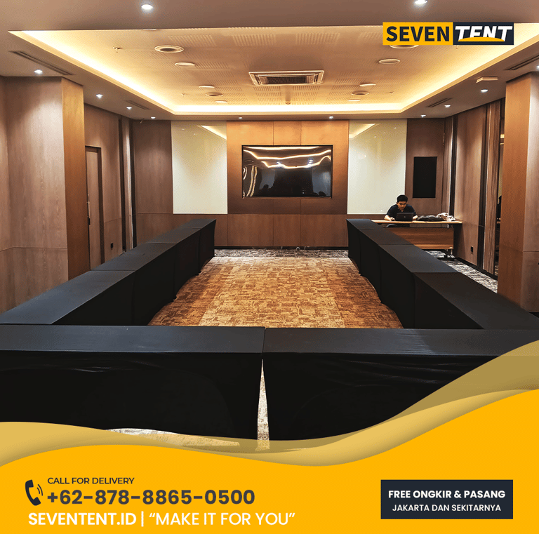 Butuh Estimasi Harga atau Konsultasi Layout? Jangan ragu untuk menghubungi tim admin Seventent.id. Kami siap membantu menghitung kebutuhan meja berdasarkan luas ruangan Anda.
