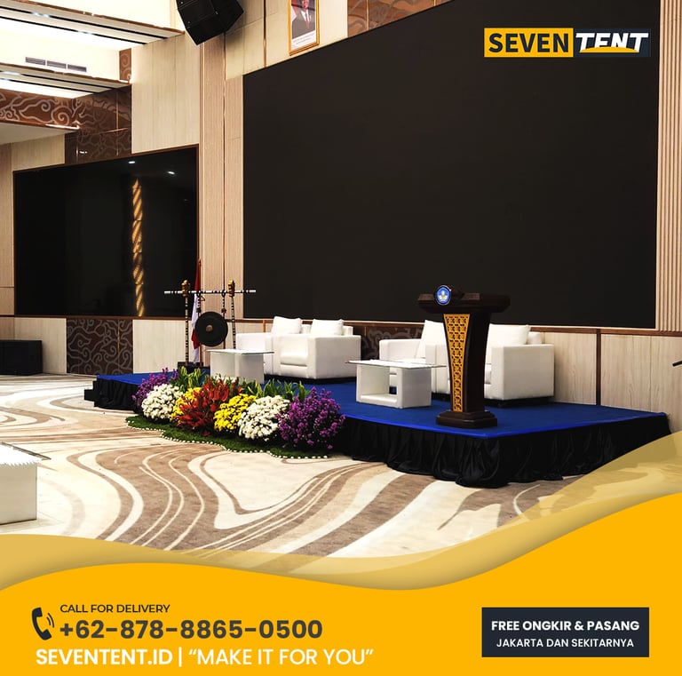 Butuh sewa panggung backdrop Bekasi yang kokoh & rapi? Seventent.id menyediakan jasa panggung modular & backdrop custom kualitas VVIP. Material multiplek 18mm, finishing bersih, & siap antar ke Cikarang hingga Summarecon. Cek promo harga 2026 & bangun pusat perhatian acara Anda di sini!