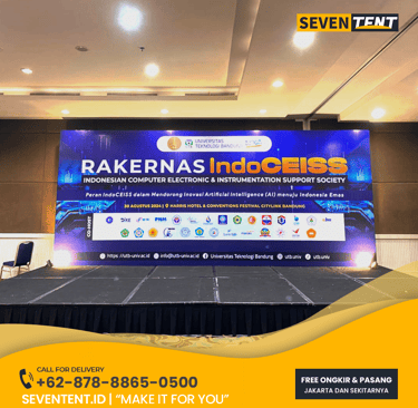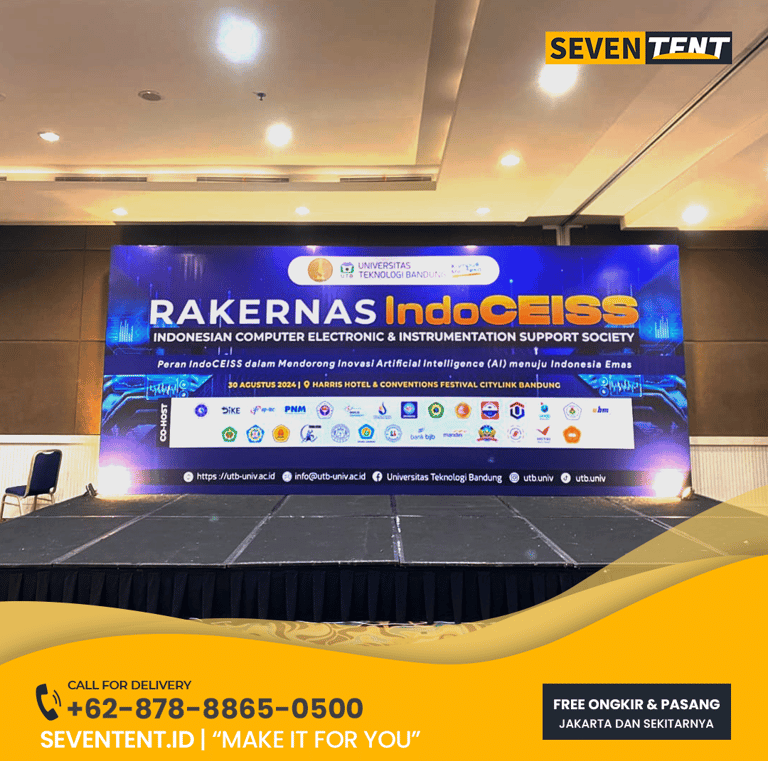 Butuh sewa panggung backdrop Tangerang Selatan yang kokoh & profesional? Seventent.id menyediakan paket stage & backdrop kustom untuk event di BSD, Bintaro & Serpong. Unit stabil, karpet bersih, cetakan tajam, & siap antar tepat waktu. Cek promo harga 2026 & buat panggung Anda makin megah di sini!