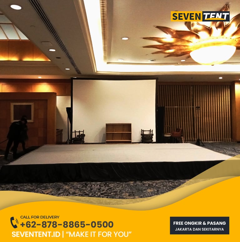 Butuh sewa panggung di Jakarta? Seventent.id menyediakan jasa sewa stage panggung melamine, karpet, dan rigging dengan keamanan terjamin. Kirim cepat ke seluruh Jakarta, Jakarta Utara, Jakarta Timur, Jakarta Selatan, Jakarta Barat, Jakarta Pusat. Cek harga dan pesan panggung Anda di sini!