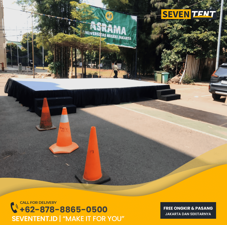Cari sewa panggung kayu Karawang? Cek panduan ukuran modular, karakteristik material multiplex 18mm, & durability beban 500kg. Solusi panggung event & corporate di KIIC, Suryacipta, & Galuh Mas. Unit kokoh, rapi, & siap antar dari Seventent.id. Baca FAQ lengkapnya di sini!
