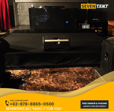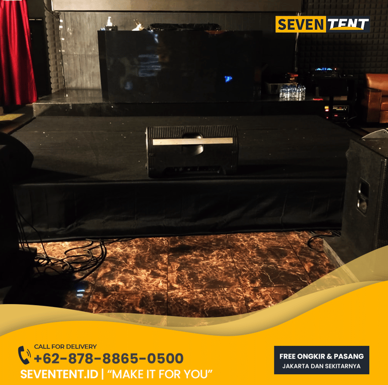 Sewa panggung kecil Bekasi di Seventent.id menyediakan panggung modular ukuran ringkas, Memiliki karakteristik rangka besi yang sangat stabil dan alas multiplek tebal berlapis karpet. Kami melayani wilayah Bekasi Kota, Tambun, hingga Cikarang.