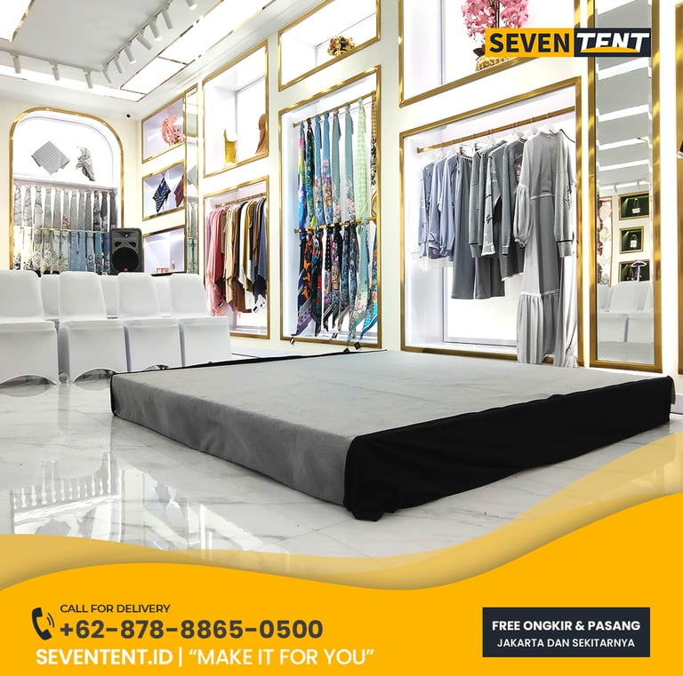 Butuh sewa panggung kecil Jabodetabek yang kokoh & rapi? Seventent.id menyediakan rental mini stage modular kualitas premium. Unit stabil, karpet bersih, & siap antar ke Jakarta hingga Bogor. Cek promo harga 2026 & buat acara Anda makin berkesan di sini!