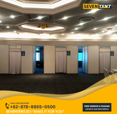 Butuh sekat ruangan praktis? Sewa Partisi Ruangan Depok di Seventent.id menyediakan penyekat R8 modular untuk kantor, event, & bilik medis. Rangka aluminium kokoh, panel PVC putih bersih, & pasang tanpa paku dinding. Melayani Depok, Kota Depok. Cek harga sewa terbaru 2026 di sini!