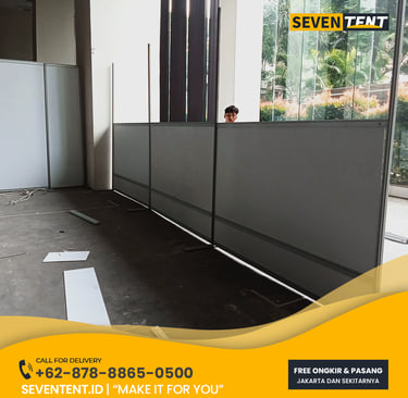 Cari sewa partisi sekat Tangerang? Cek panduan harga 2026, spesifikasi modular R8, & karakteristik sekat ruangan profesional. Solusi pembatas ruang di BSD, Gading Serpong, & ICE BSD. Unit rapi, durability terjamin, & siap antar dari Seventent.id. Klik untuk konsultasi gratis hari ini!