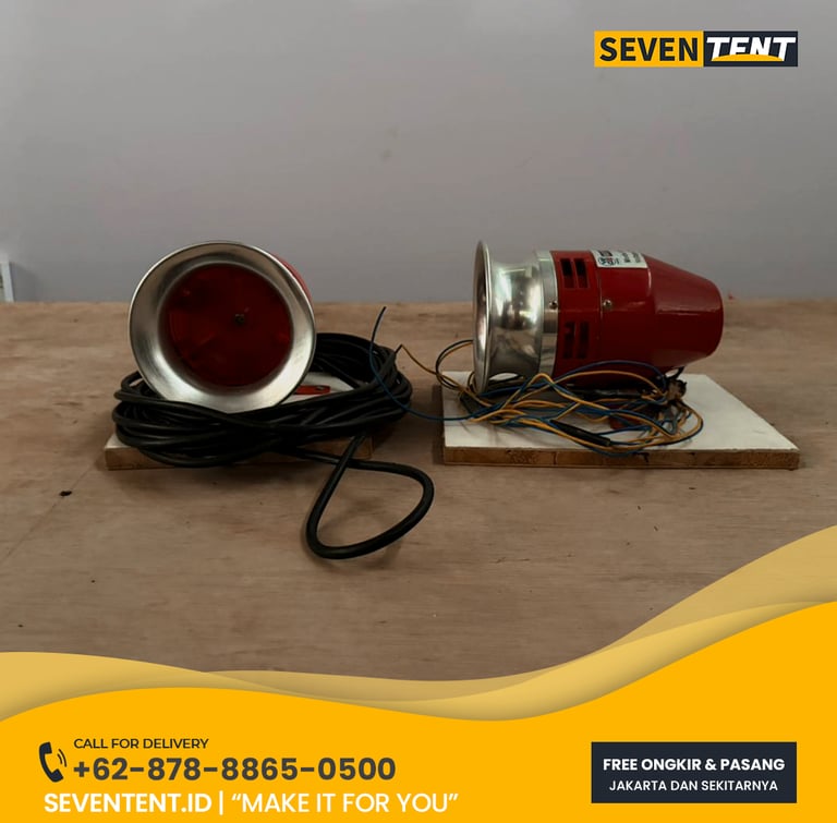 Sewa sirine di Karawang untuk keperluan peresmian gedung atau pabrik umumnya menggunakan sistem tombol push-button industri yang terintegrasi dengan buzzer berdaya tinggi. Karakteristik utamanya meliputi intensitas suara mencapai 110 dB, desain podium yang elegan (akrilik atau kayu), dan sistem kelistrikan yang aman. Dari sisi durability, alat ini dirancang untuk penggunaan outdoor maupun indoor dengan respon instan tanpa delay. Seventent.id melayani pengiriman ke Karawang Barat, Timur, hingga seluruh kawasan industri utama.