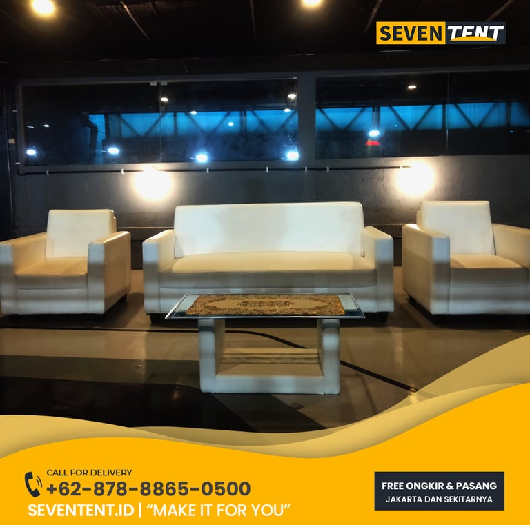 Butuh sewa sofa minimalis Depok yang rapi & mewah? Seventent.id menyediakan sofa single, double, & triple kualitas premium untuk event VIP & wedding. Unit bersih, modern, & siap antar ke Depok, Kota Depok. Cek harga promo 2026 & buat area tamu Anda lebih elegan di sini!