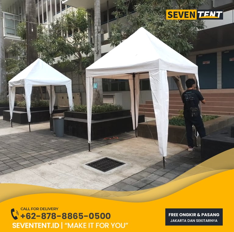 Butuh sewa tenda bazar Bekasi yang bersih & kokoh? Seventent.id menyediakan tenda Bazar & Sarnafil 3x3, 5x5 berkualitas untuk festival & UMKM. Unit terawat, 100% waterproof, & siap antar ke Cikarang, Tambun, hingga Summarecon. Cek harga promo 2026 & bangun booth pameran Anda di sini!