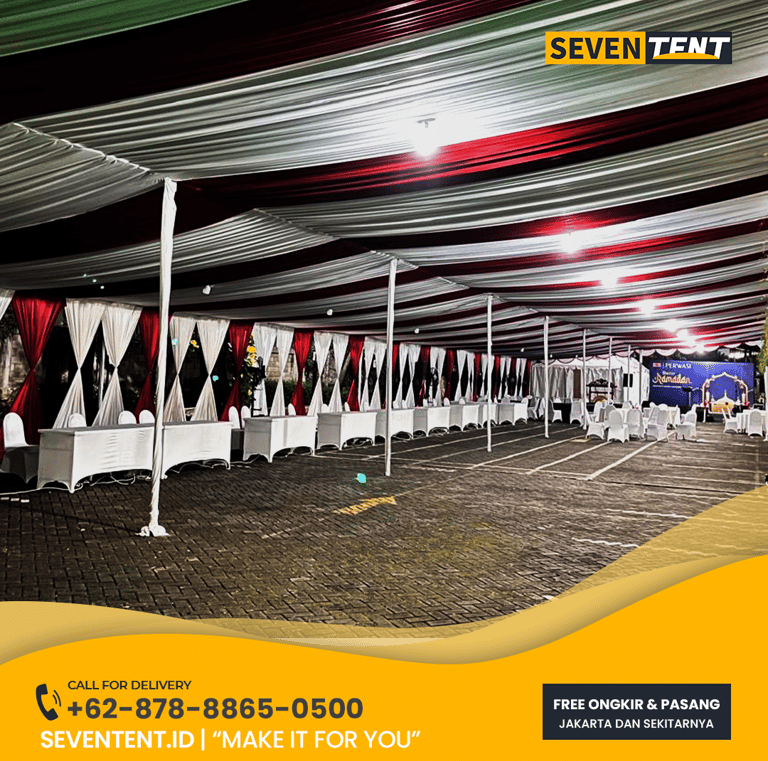 Cari sewa tenda dekor Tangerang Selatan yang mewah & rapi? Seventent.id menyediakan rental tenda dekorasi serut & sentris premium untuk event di BSD, Bintaro & Serpong. Kain bersih, desain elegan, & siap antar tepat waktu. Cek promo harga 2026 & buat acara Anda makin berkelas di sini!