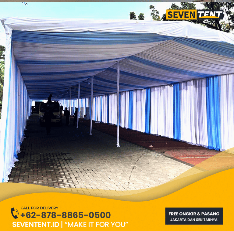 Sewa tenda hanggar Jakarta di Seventent.id menyediakan struktur tenda clear-span dengan lebar bentangan. Layanan kami mencakup pengiriman ke seluruh wilayah Jakarta (Pusat, Selatan, Barat, Timur, Utara) dengan jaminan standar keamanan K3 dan efisiensi ruang maksimal.