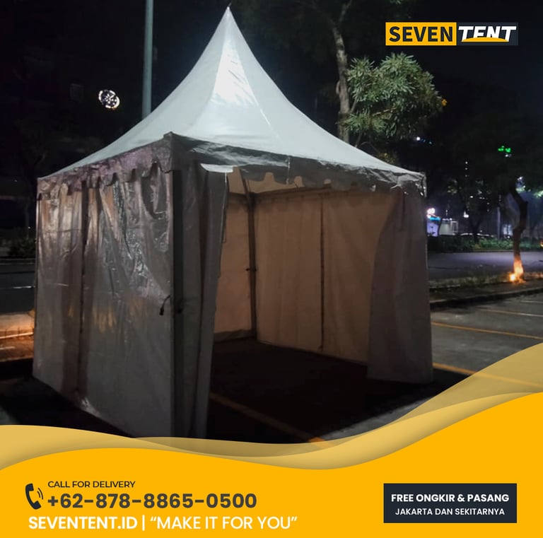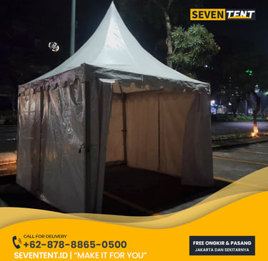 Cari sewa tenda kerucut Karawang? Cek panduan ukuran sarnafil 3x3m & 5x5m terbaru 2026. Analisis karakteristik material PVC waterproof, durability rangka aluminium, & FAQ lengkap untuk event di KIIC, Suryacipta, & Galuh Mas. Unit bersih & siap antar dari Seventent.id. Baca selengkapnya!