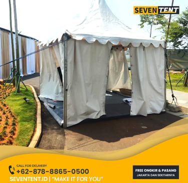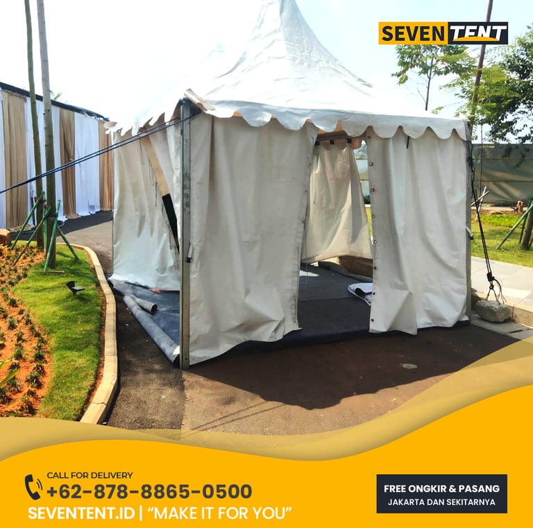 Butuh sewa tenda sarnafil Tangerang Selatan yang mewah & anti-bocor? Seventent.id menyediakan rental tenda kerucut putih premium untuk event di BSD, Bintaro & Serpong. Unit bersih, rangka aluminium kokoh, & siap antar tepat waktu. Cek promo harga 2026 & buat stan pameran Anda makin berkelas di sini!
