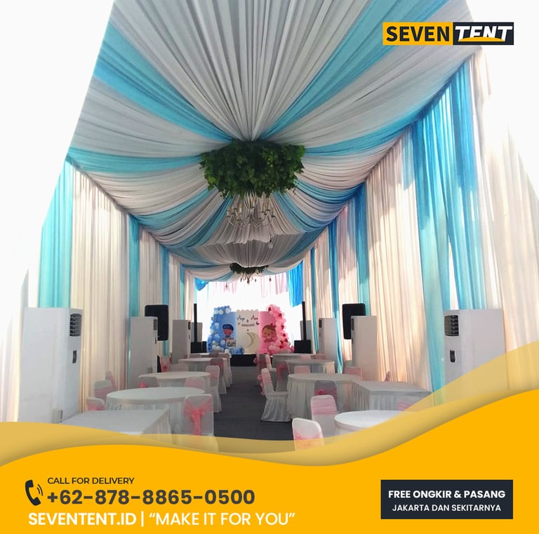 Butuh sewa tenda serut Tangerang Selatan yang mewah & rapi? Seventent.id menyediakan rental tenda dekorasi kain premium untuk wedding & event di BSD, Bintaro & Pamulang. Kain bersih, wangi, 100% anti-bocor, & siap antar tepat waktu. Cek promo harga 2026 & buat acara Anda makin berkelas di sini!