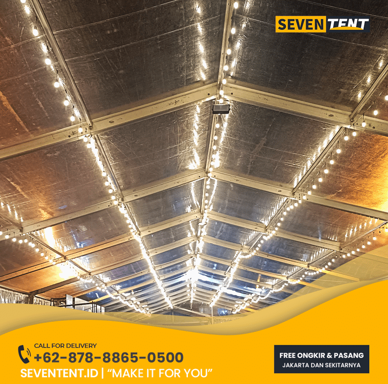 Sewa tenda transparan Jakarta di Seventent.id menggunakan material PVC Clear Premium setebal 0,5 mm yang memiliki karakteristik tingkat kejernihan tinggi dan tahan terhadap cuaca panas. Tersedia dalam berbagai tipe mulai dari Tenda Sarnafil Transparan (3x3 dan 5x5) hingga Tenda Roder Transparan untuk kapasitas besar. Tenda ini dirancang untuk memaksimalkan efek pencahayaan (fairy lights atau chandelier) pada malam hari dan tetap memberikan perlindungan $100\%$ terhadap air hujan. Kami melayani pemasangan di seluruh Jakarta dengan standar keamanan konstruksi yang tinggi.