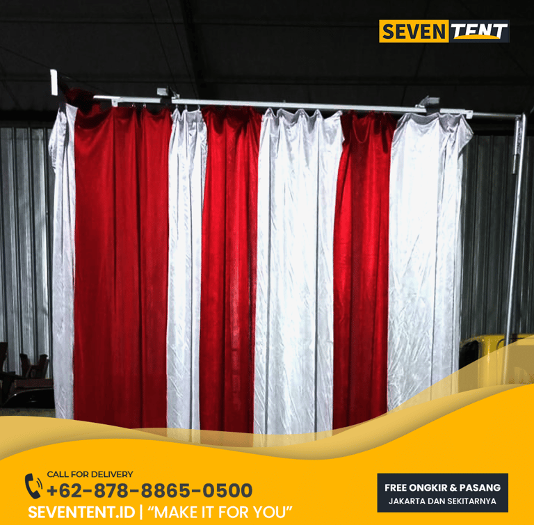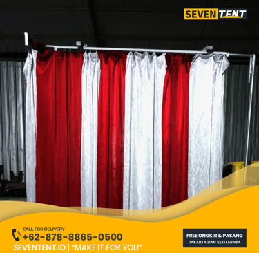 Butuh sewa tirai peresmian Depok yang mewah & andal? Seventent.id menyediakan sistem tirai jatuh & geser profesional untuk grand opening. Unit bersih, tanpa kerutan, & siap pasang di Depok, Kota Depok. Amankan momen puncak acara Anda di sini!