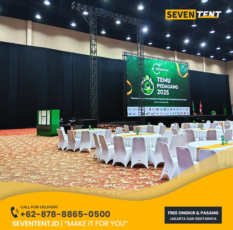 Menyiapkan event besar tentu melelahkan jika Anda harus mengurus logistik sendirian. Seventent.id hadir sebagai partner terpercaya untuk kebutuhan furnitur acara Anda: