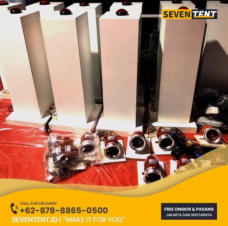 Sewa tombol sirine peresmian Tangerang Selatan di Seventent.id menyediakan perangkat simbolis peresmian berupa tombol pilar atau emergency button yang terintegrasi dengan sistem audio. Memiliki karakteristik desain pilar yang elegan (tinggi 80 cm - 100 cm), lampu indikator LED, dan pilihan suara sirine yang bisa dikustomisasi. Kami melayani seluruh wilayah Tangerang Selatan (BSD, Bintaro, Serpong, Pamulang, Ciputat).