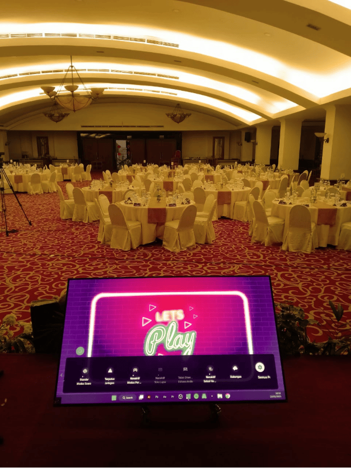 Perangkat multimedia modern untuk menunjang presentasi, pemutaran video, live streaming, atau keperluan hiburan. Jernih, terang, dan responsif. Solusi audio visual terbaik untuk event masa kini.