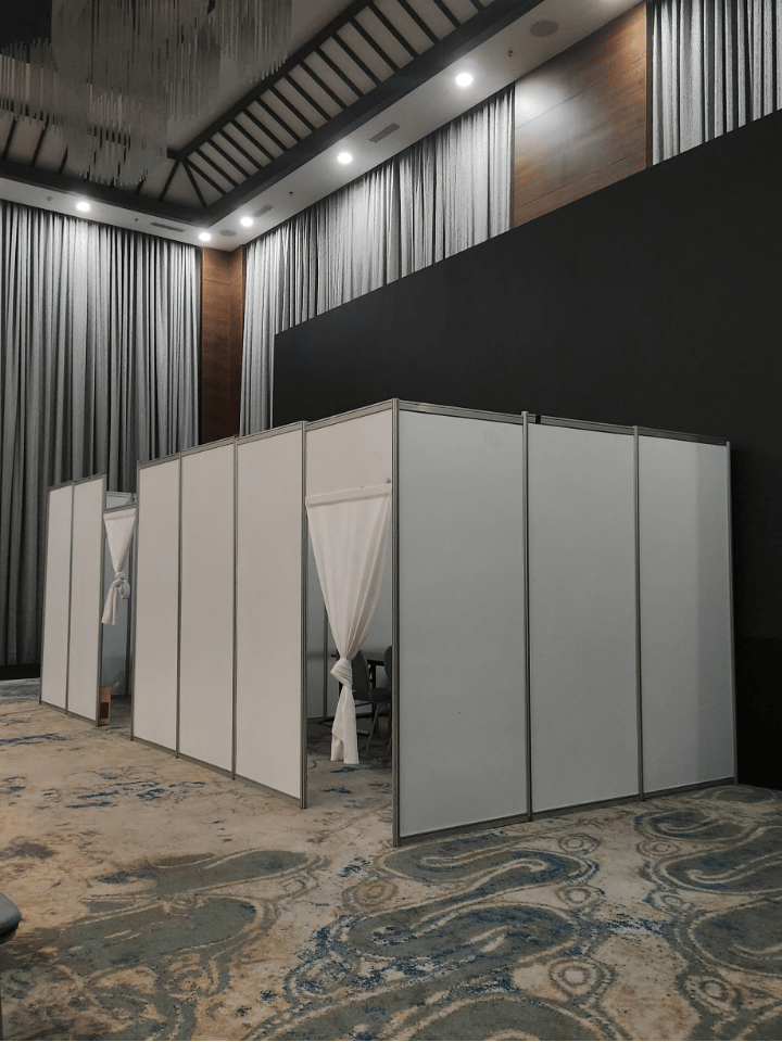 Solusi praktis untuk pembagian ruangan acara tanpa mengorbankan tampilan. Tirai dan partisi kami hadir dengan berbagai pilihan warna dan bahan untuk mendukung tema acara Anda.