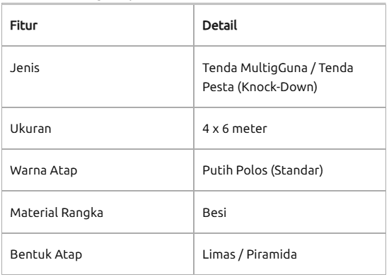 Cek panduan ukuran Tenda Multiguna 4x6 di Seventent.id, kapasitas hingga 30 orang, dan spesifikasi rangka besi galvalum kokoh. Solusi sewa tenda pesta, gudang, & posko darurat dengan atap 100% waterproof. Pastikan event Anda terlindungi dengan tenda berkualitas di sini!