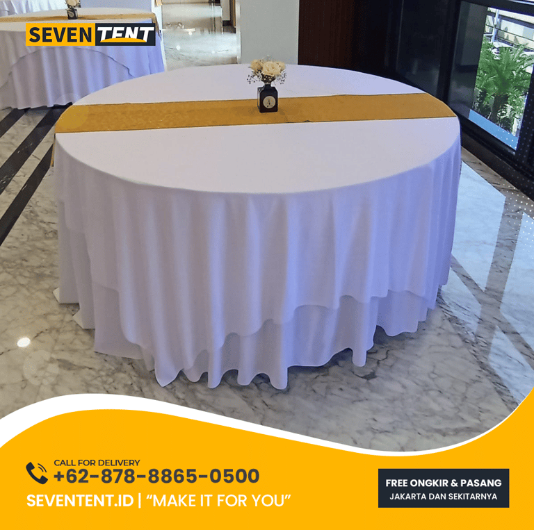 Dalam dunia persewaan furnitur dan perencanaan acara, ukuran round table sangat krusial untuk menentukan kapasitas ruangan. secara visual, penggunaan meja bulat yang dibalut dengan taplak meja (tablecloth) menjuntai hingga lantai akan memberikan kesan ruangan yang lebih elegan dan profesional.