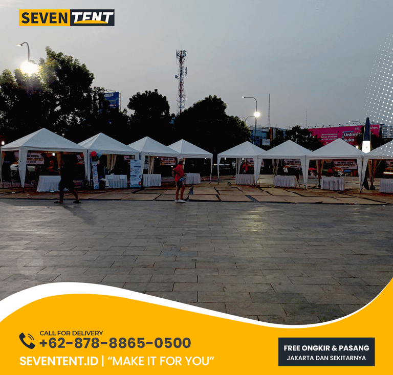 Cek panduan ukuran tenda jualan 2026: standar 2x2m hingga 3x3m, karakteristik material matic waterproof, & analisis durability rangka. Solusi praktis untuk bazar & kuliner. Unit kokoh, bersih, & siap antar tepat waktu. Baca selengkapnya di Seventent.id!