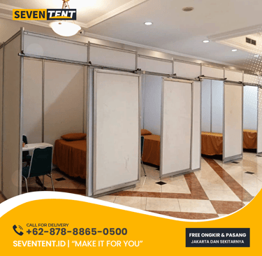 Cek panduan lengkap Partisi Ruangan di Seventent.id. Temukan spesifikasi Partisi R8, penyekat portable beroda, dan sekat kayu eksklusif untuk kantor atau event. Detail ukuran, material kokoh, dan harga sewa terbaik. Transformasi ruangan Anda dengan solusi modular kami di sini!