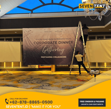 Butuh sewa backdrop Bekasi yang rapi & kokoh? Seventent.id menyediakan jasa pembuatan backdrop kayu & R8 kualitas premium untuk seminar, wedding, & expo. Cetak high-res, finishing rapi, & siap antar ke Cikarang hingga Summarecon. Cek harga promo 2026 & bingkai momen spesial Anda di sini!