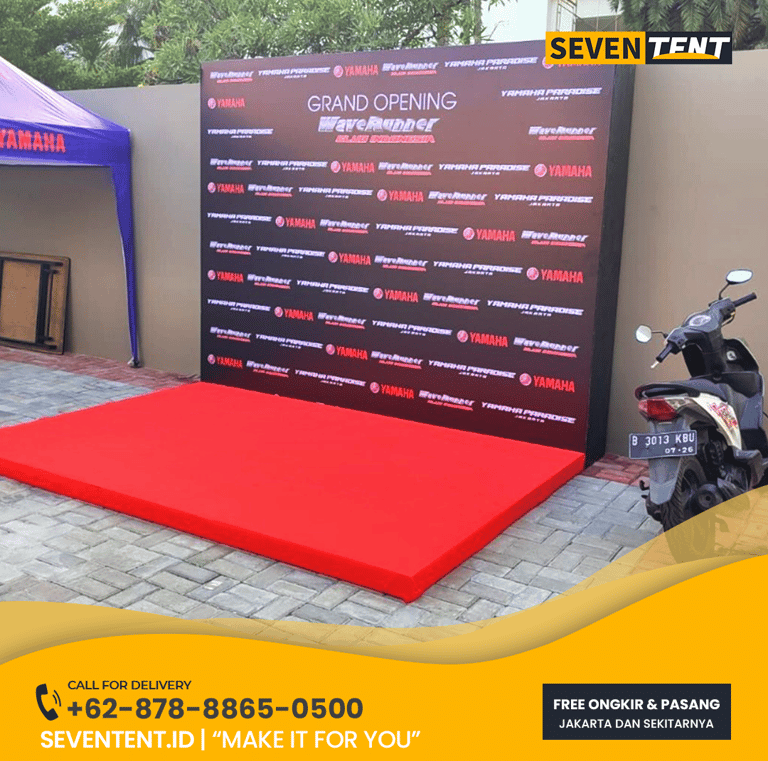 Butuh sewa backdrop Depok yang rapi & kokoh? Seventent.id menyediakan backdrop R8, rangka kayu, & kustom flexy untuk seminar, pameran, & wedding. Unit bersih, tanpa kerut, & siap pasang di Depok, Kota Depok. Cek harga terbaru 2026 & buat panggung Anda lebih ikonik di sini!