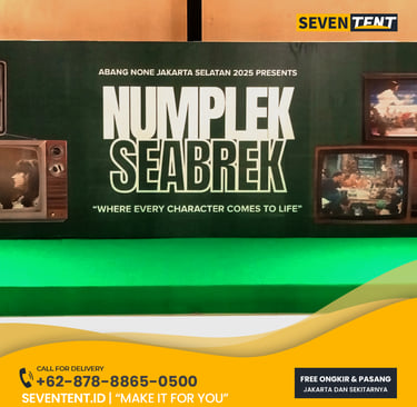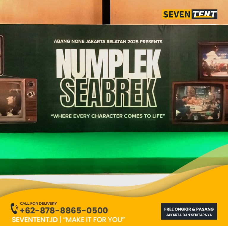 Sewa Backdrop Panggung di Karawang tersedia dalam berbagai ukuran modular mulai dari 3x4 meter hingga 4x10 meter atau lebih. Karakteristik utamanya meliputi penggunaan rangka besi hollow yang kokoh, cetakan visual bahan Flexi High Resolution, dan pemasangan yang presisi (tanpa kerutan). Dari sisi durability, rangka kami dirancang stabil untuk penggunaan indoor maupun outdoor. Seventent.id melayani wilayah Karawang Barat, Timur, hingga kawasan industri KIIC dan Suryacipta.