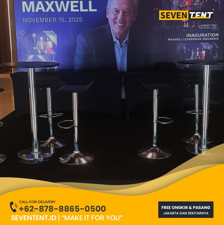 Butuh sewa kursi barstool Depok yang mewah & hidrolik? Seventent.id menyediakan kursi bar chrome berkualitas tinggi untuk pameran, bar, & event VVIP. Unit bersih, stabil, & siap antar ke Depok, Kota Depok. Cek harga terbaru 2026 & buat tampilan booth Anda lebih modern di sini!