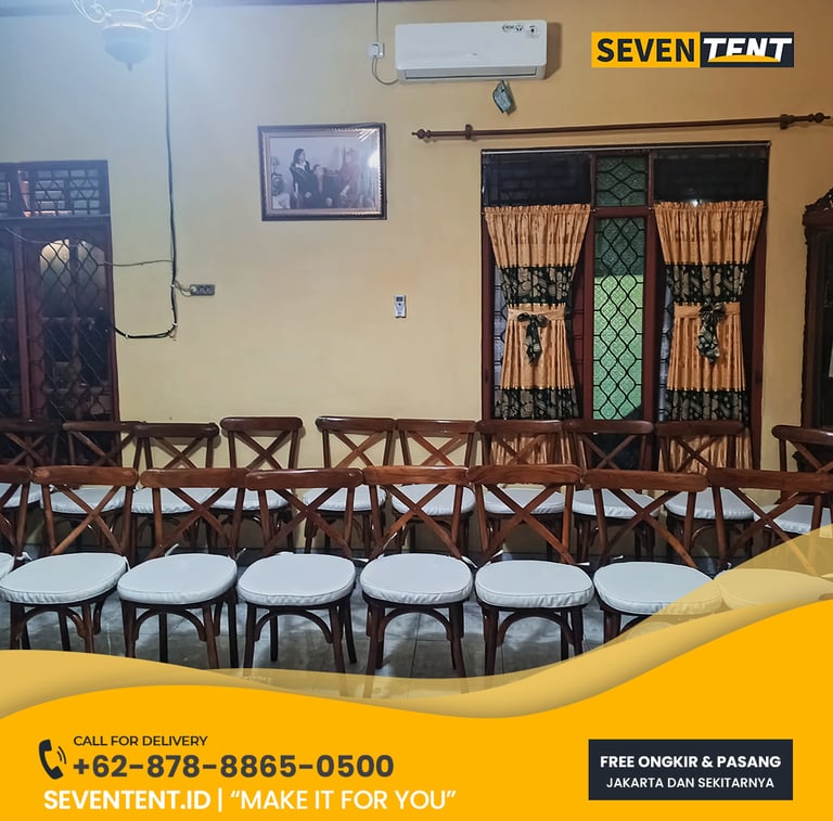 "Cari sewa kursi crossback Karawang? Cek panduan harga sewa 2026, karakteristik kayu solid premium, & durability beban 120kg. Solusi kursi wedding rustic & VIP dinner di Resinda, Galuh Mas, & KIIC. Unit estetik, bersih, & siap antar dari Seventent.id. Baca selengkapnya di sini!