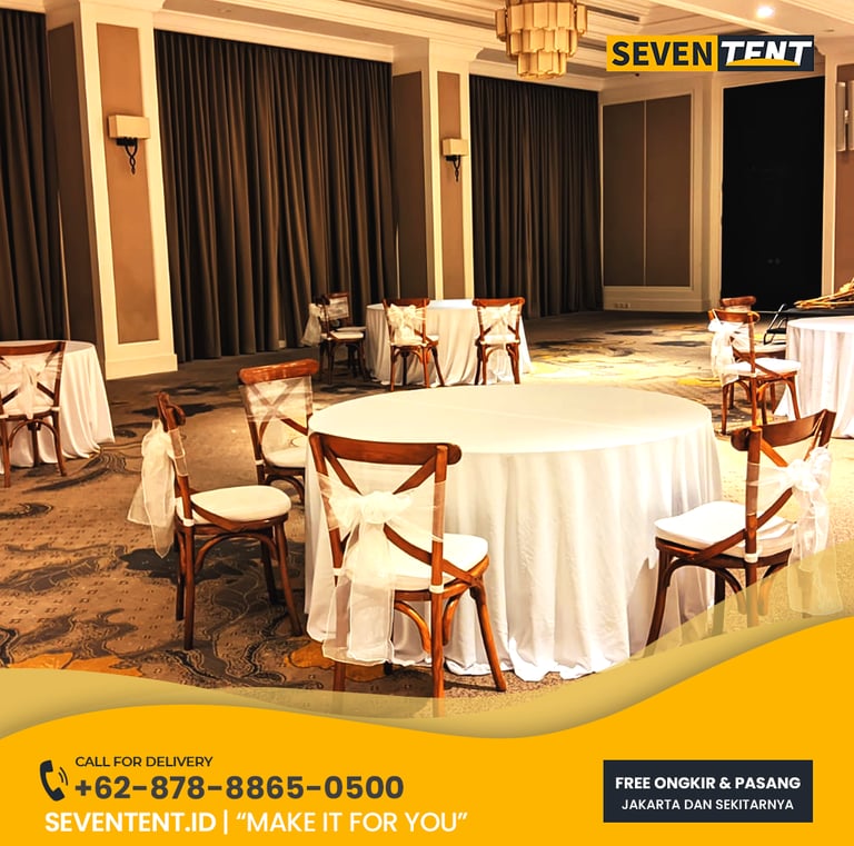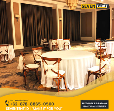 Menyiapkan event besar tentu melelahkan jika Anda harus mengurus logistik sendirian. Seventent.id hadir sebagai partner terpercaya untuk kebutuhan furnitur acara Anda: