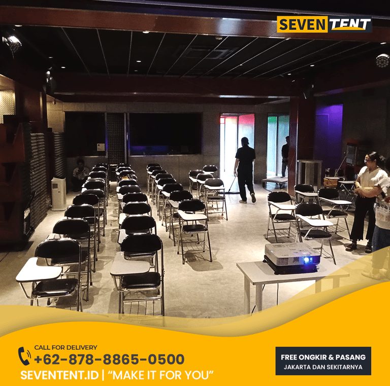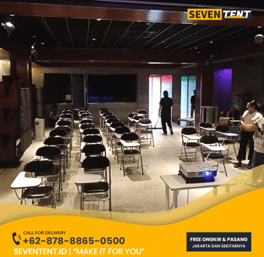 Butuh sewa kursi kuliah Bekasi yang praktis & kokoh? Seventent.id menyediakan kursi tablet berkualitas untuk ujian, training, & seminar. Unit bersih, meja lipat stabil, & siap antar ke Cikarang, Tambun, hingga Bekasi Kota. Cek harga promo 2026 & maksimalkan kapasitas ruangan Anda di sini!