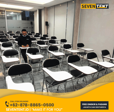 Butuh sewa kursi kuliah di Jakarta? Seventent.id menyediakan jasa sewa kursi lipat meja (Chitose) kualitas prima untuk training, ujian, dan workshop. Stok ribuan unit, bersih, meja stabil, dan kirim cepat ke seluruh wilayah Jakarta, Jakarta Utara, Jakarta Timur, Jakarta Selatan, Jakarta Barat, Jakarta Pusat. Cek spesifikasi dan harga sewa kursi kuliah terbaru di sini!