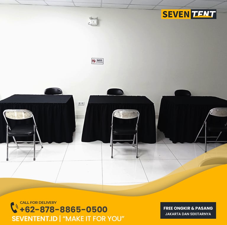 Menyiapkan event besar tentu melelahkan jika Anda harus mengurus logistik sendirian. Seventent.id hadir sebagai partner terpercaya untuk kebutuhan furnitur acara Anda: