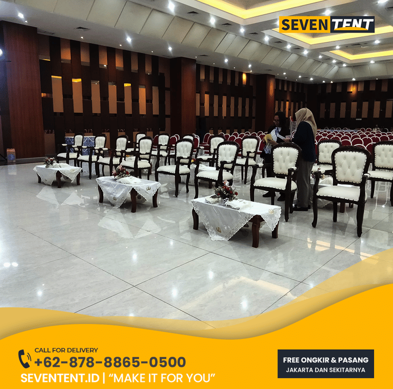 Menyiapkan event besar tentu melelahkan jika Anda harus mengurus logistik sendirian. Seventent.id hadir sebagai partner terpercaya untuk kebutuhan furnitur acara Anda: