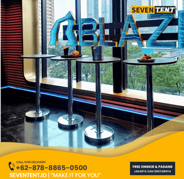 Cari persewaan meja barstool di Jakarta? Seventent.id menyediakan sewa meja bar modern dengan diameter 60cm dan tinggi 110cm untuk exhibition, lounge VIP, dan party. Koleksi terlengkap, barang bersih, dan kirim cepat ke seluruh Jakarta. Cek harga sewa harian dan spesifikasi model terbaru di sini!